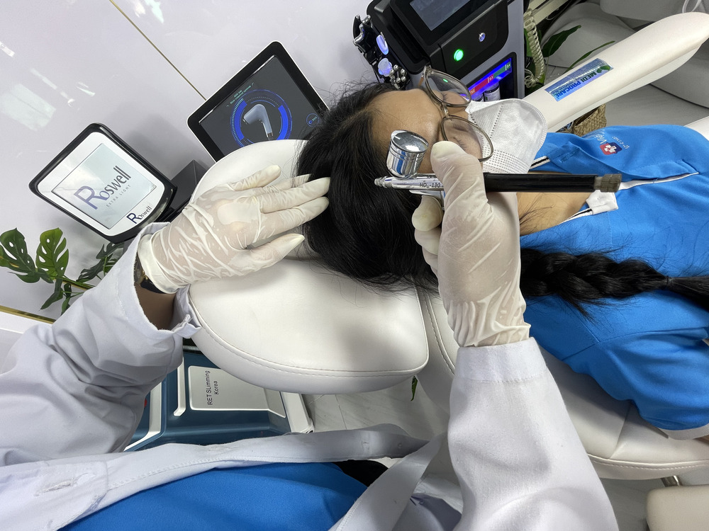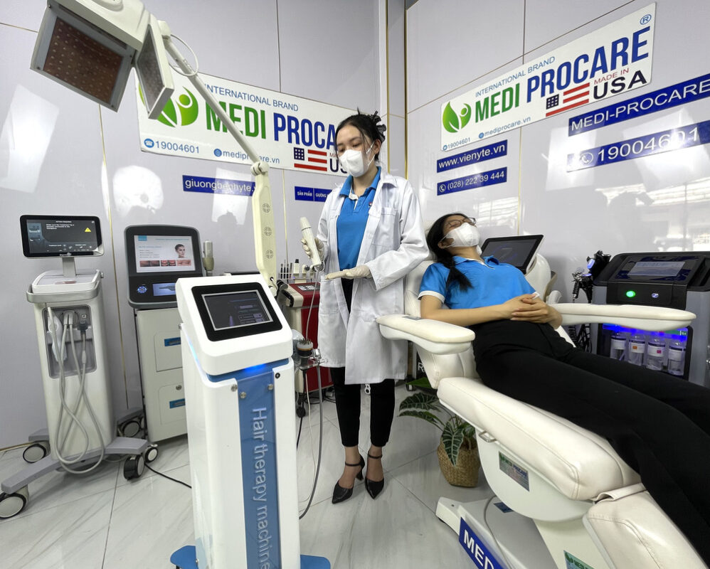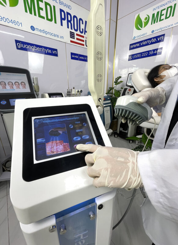 Dịch vụ sử dụng máy kích thích mọc tóc Diode Laser Hair Therapy Machine – thiết bị hiện đại bậc nhất hiện nay trong lĩnh vực phục hồi tóc.