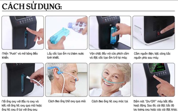 Điều chỉnh lưu lượng oxy từ 1–5 lít/phút tùy theo hướng dẫn bác sĩ.