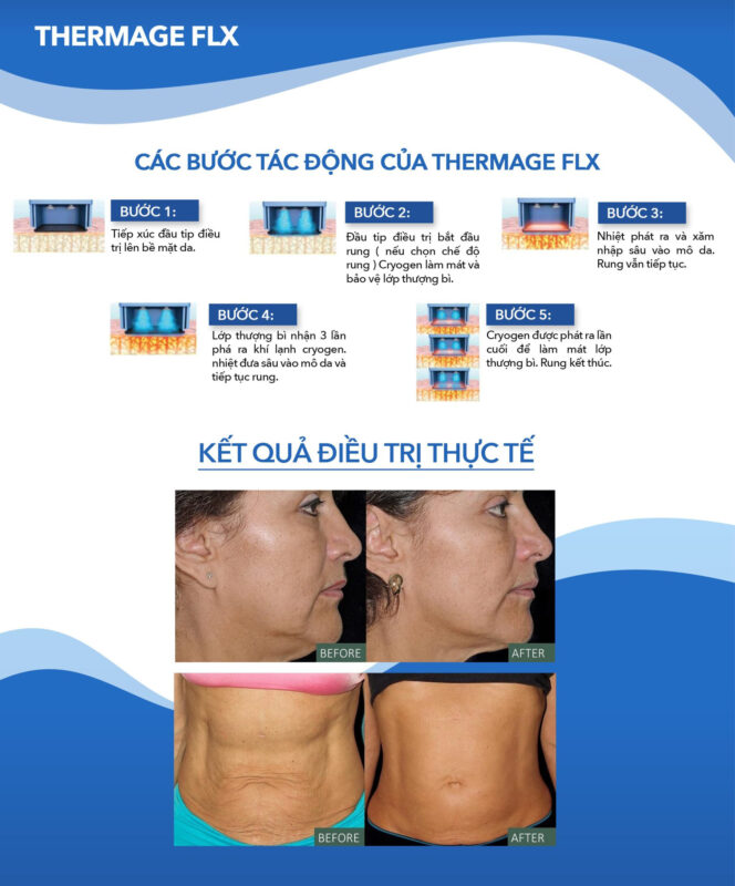 Dịch vụ trẻ hóa da, nâng cơ, xoá nhăn tại THƯƠNG HIỆU sử dụng công nghệ sóng RF sinh nhiệt tác động trực tiếp lên lớp trung bì và hạ bì, kích thích sản sinh collagen tự nhiên, đồng thời giảm mỡ, xoá bọng mắt, nâng cơ, và trẻ hóa da hiệu quả. Chip điều khiển thông minh với công nghệ ACCUREP™ tạo tần số RF năng lượng cao có điều chỉnh (REP) giúp tối ưu năng lượng đầu ra, đảm bảo nhiệt lượng và xung RF cân bằng, giảm tối đa nguy cơ bỏng và tổn thương da.